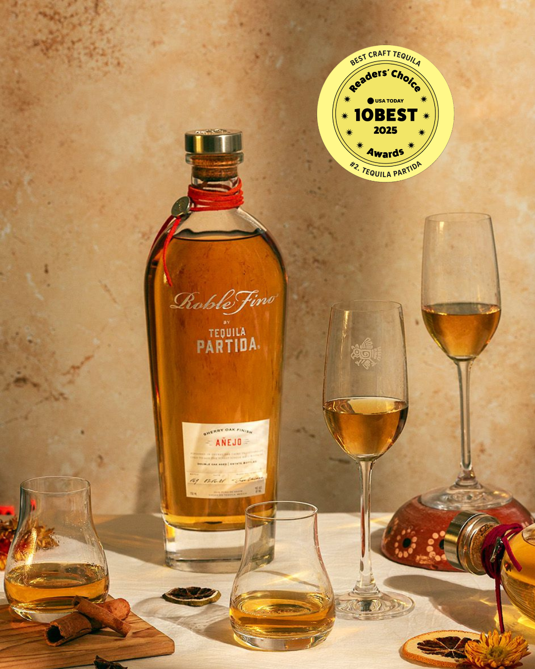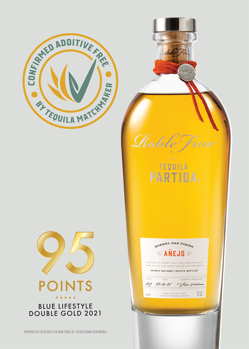 Partida Roble Fino Añejo comienza con nuestro Tequila Partida Añejo, que tiene al menos 18 meses de maduración en barricas ex-bourbon. Este tequila de sabor intenso continúa su segunda maduración durante 5 meses más en barricas de whisky escoces de una sola malta previamente utilizadas con jerez. Amplia complejidad y profundidad de sabor con notas dulces de frutos secos, roble tostado, chocolate y agave cocido. Está a 45% alcohol volumen.